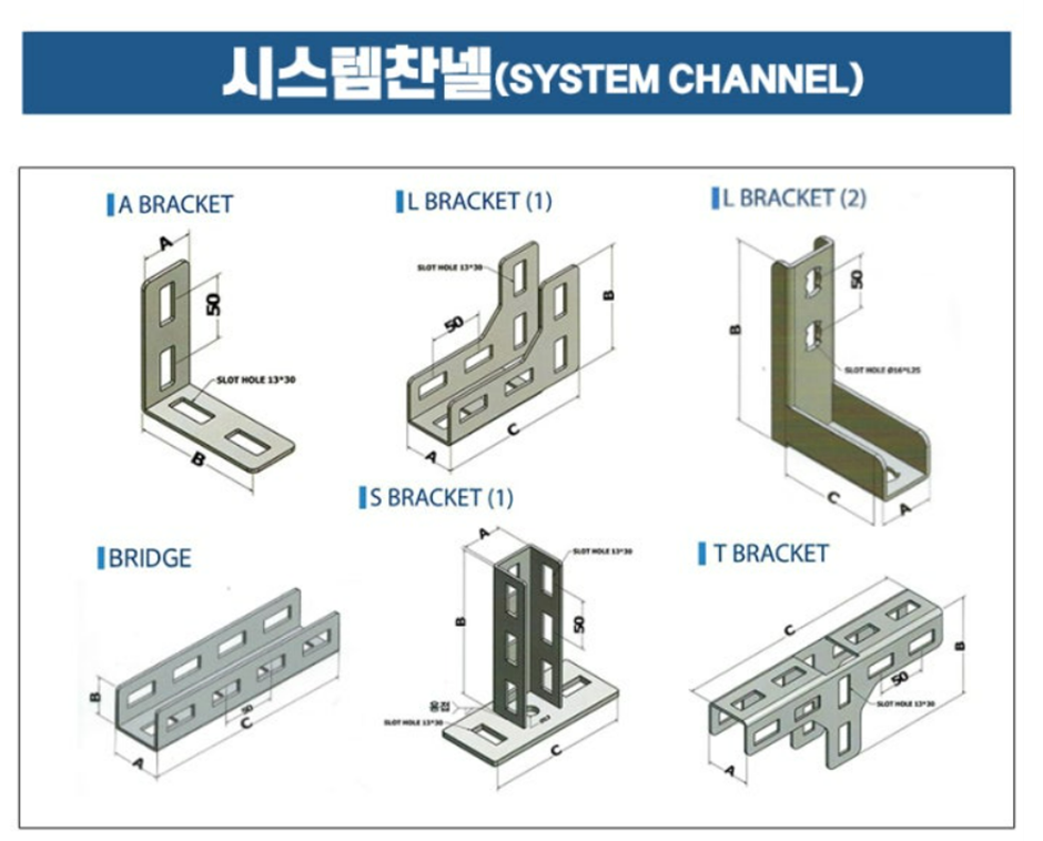 [아연] 시스템찬넬 브라켓 (상부, 하부, 중간, 엘보, 마감캡)